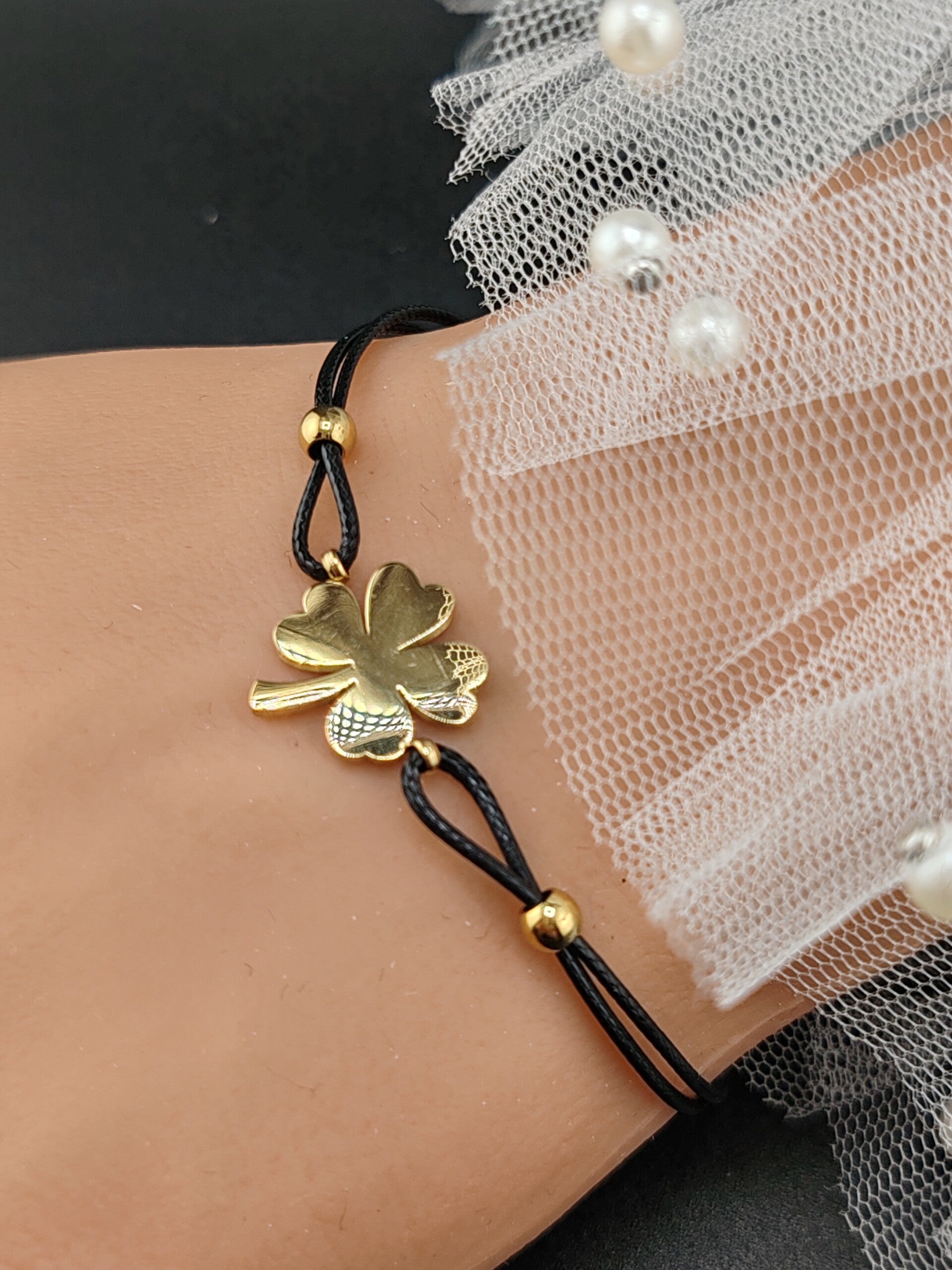 Gold Stainless Steel Bracelet Clover B009