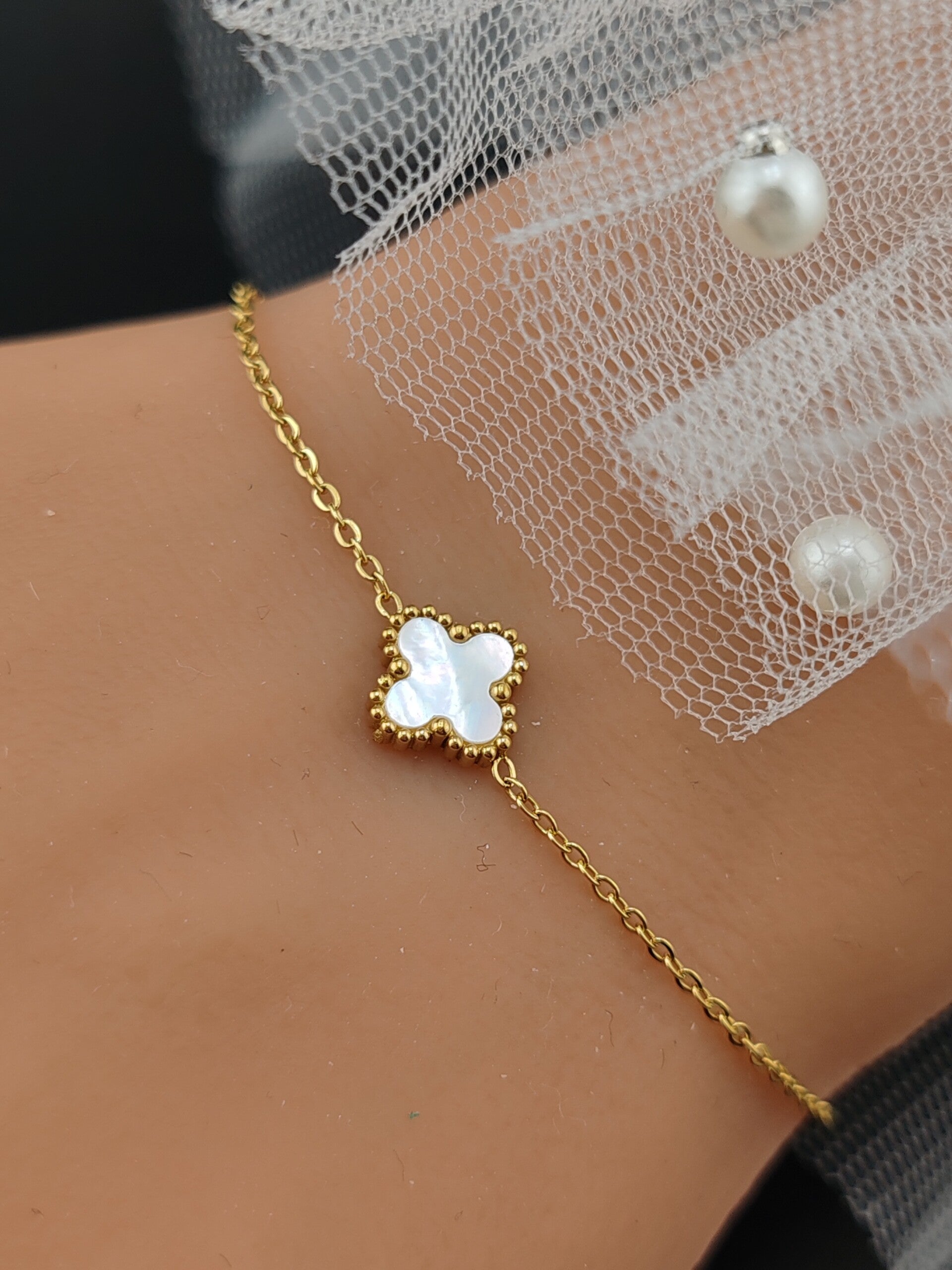 Gold Stainless Steel Bracelet Clover B033